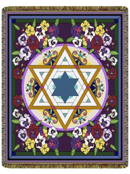 This throw features a beautiful Star of David, presented elegantly and colorfully. As well as surrounded by clusters of Pansies.